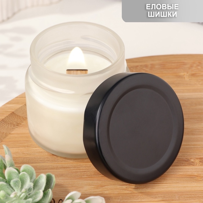 Свеча ароматическая из соевого воска в банке, 75 г, Еловые шишки МБ