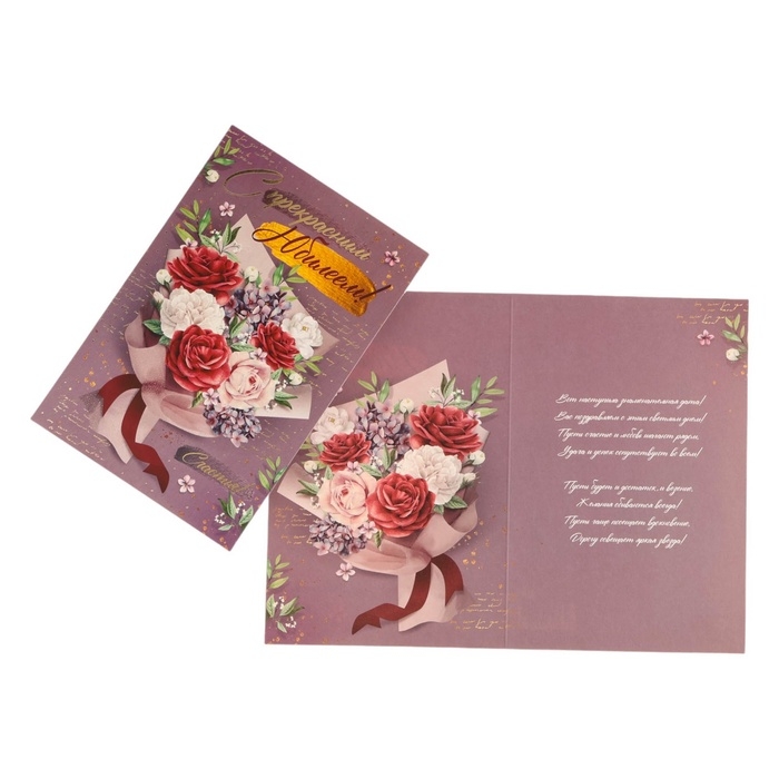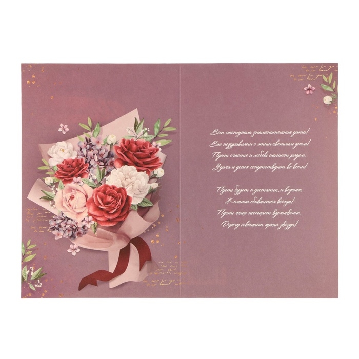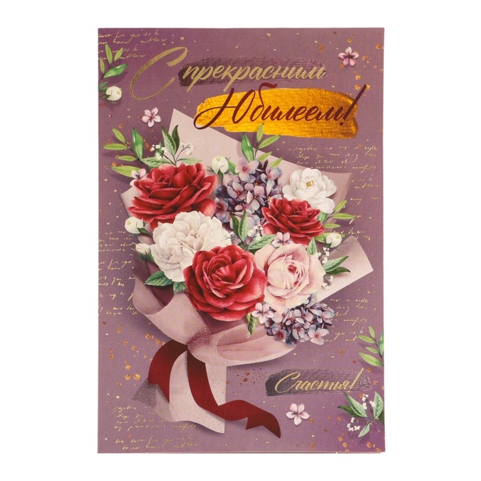 Открытка "С прекрасным Юбилеем! Счастья!" тиснение, букет, 12 х 18 см