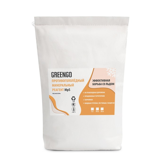 Реагент антигололёдный MpS (пескосоль), 20 кг, работает при —30 °C, в мешке, Greengo