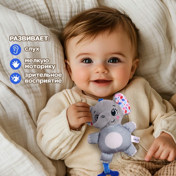 Погремушка «Слон», музыкальная, подвесная, цвет серый