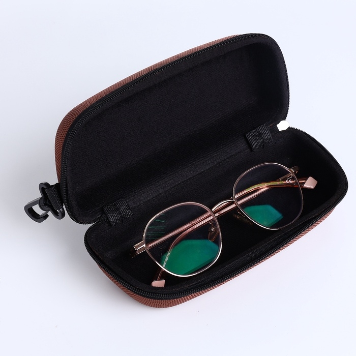 Футляр для очков на молнии, длина 17 см, цвет коричневый