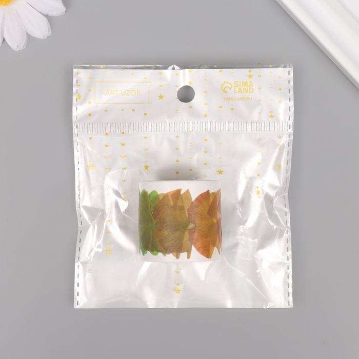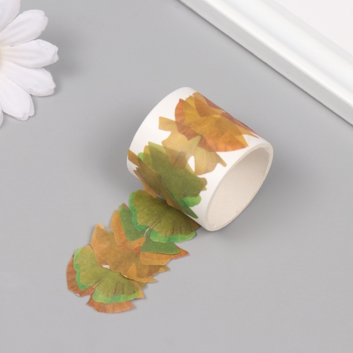 Клейкая лента бумага "Листья гинкго" 50 картинок 3,5х3,5х3.7 см