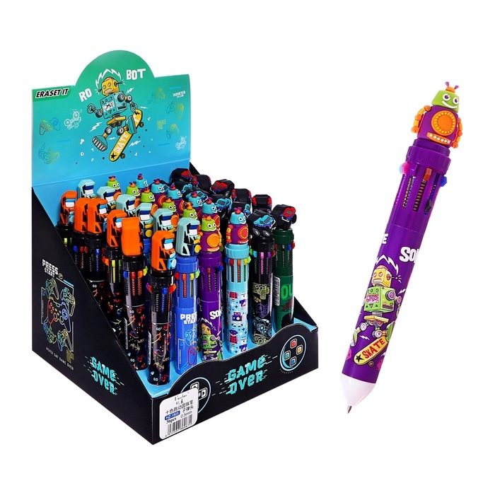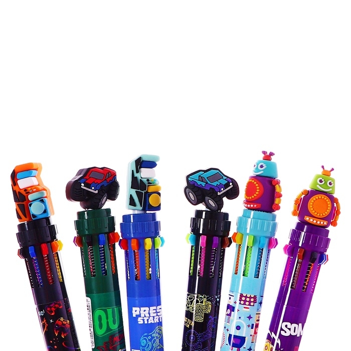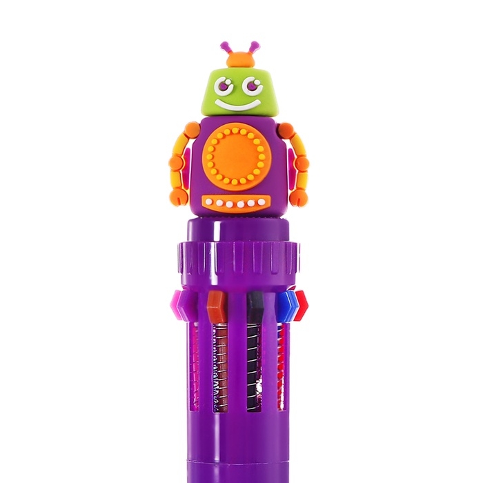 Ручка шариковая автоматическая, 10-ти цветная, штрихкод на штуке, МИКС Робот/Машина