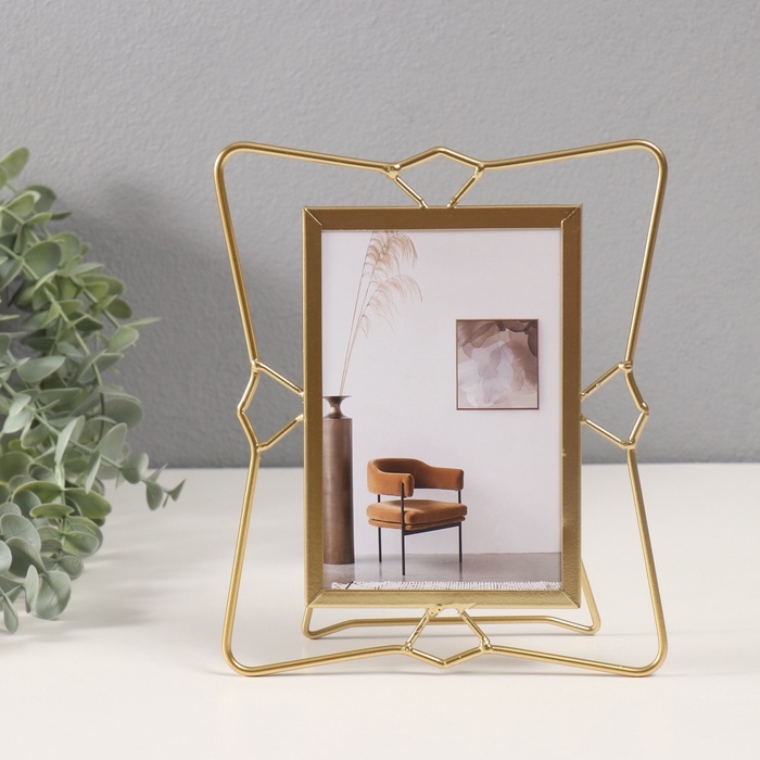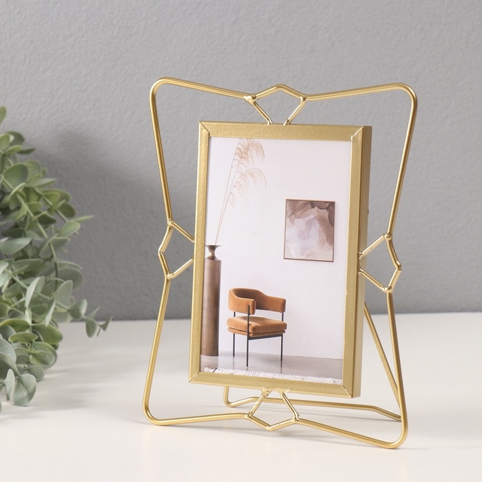Фоторамка металл на 1 фото 10х15 см "Необычная геометрия" золото 16,7х20,5 см