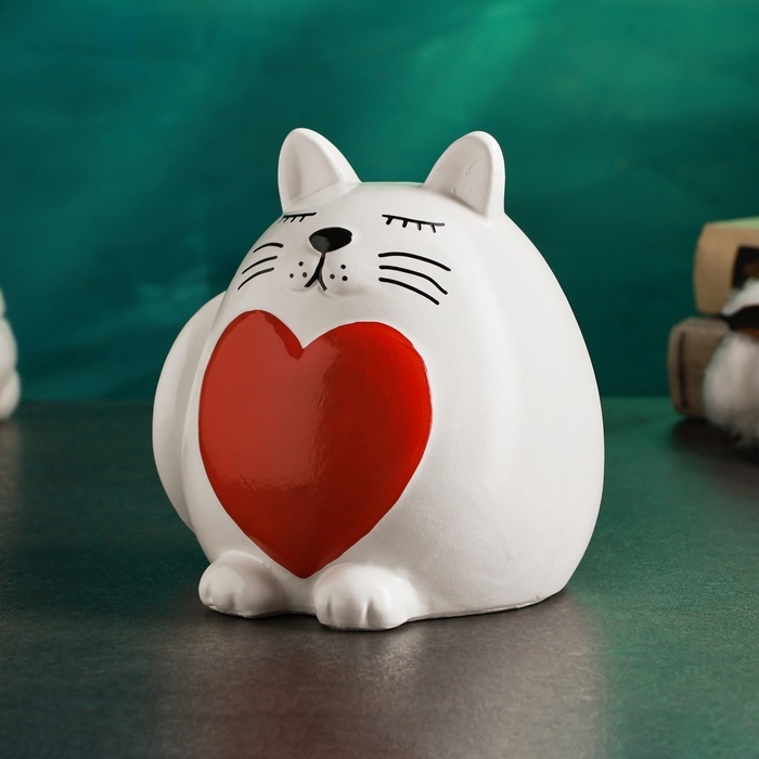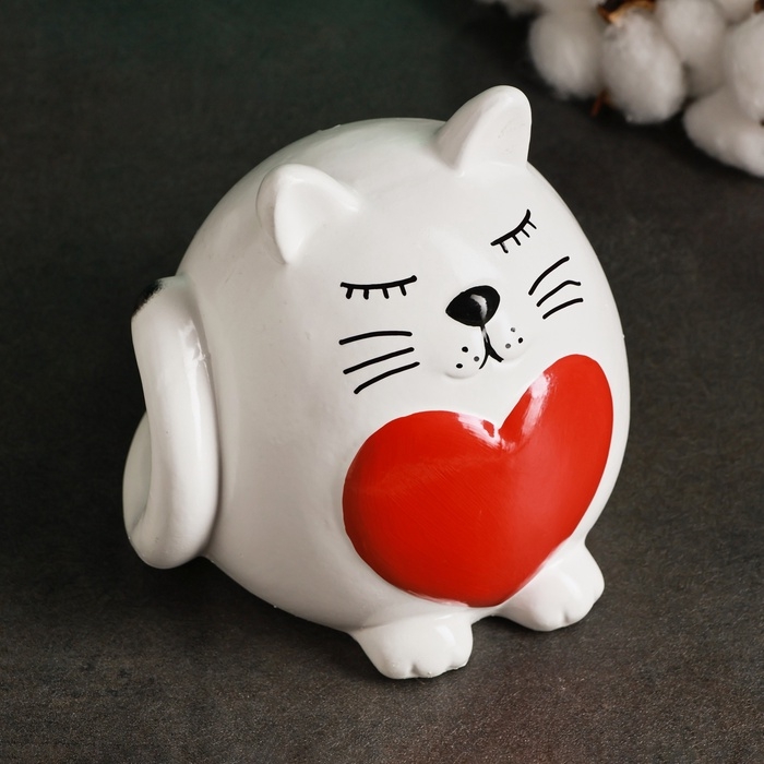 Копилка "Круглый кот с сердцем" белый, 14см
