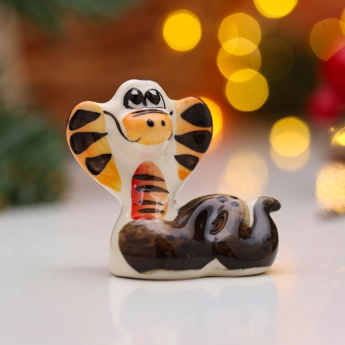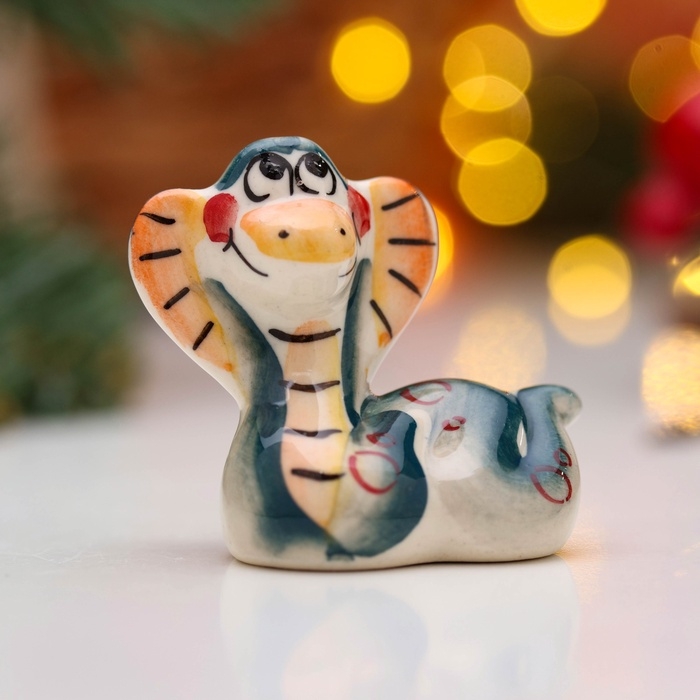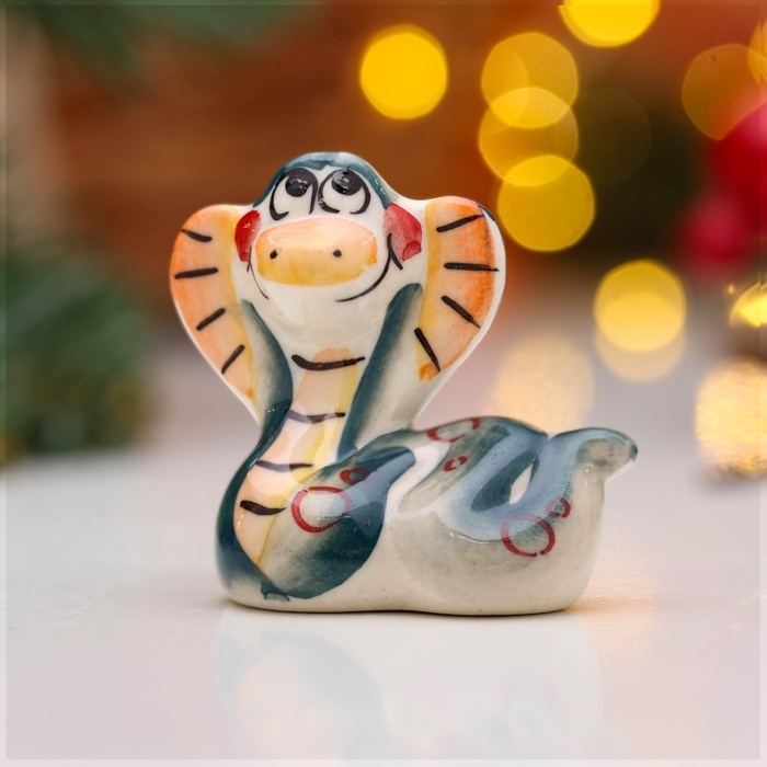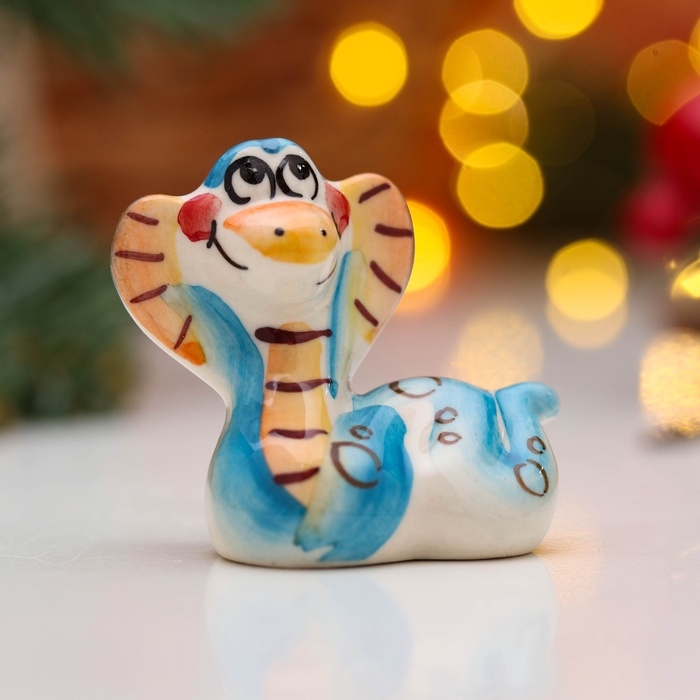 Новый год. Сувенир символ года "Змея Маруся", гжель, цвет, 4,5 см