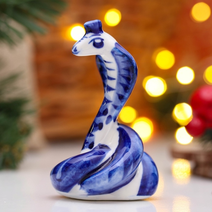 Новый год. Сувенир символ года "Змей Гоша", гжель, 4 см