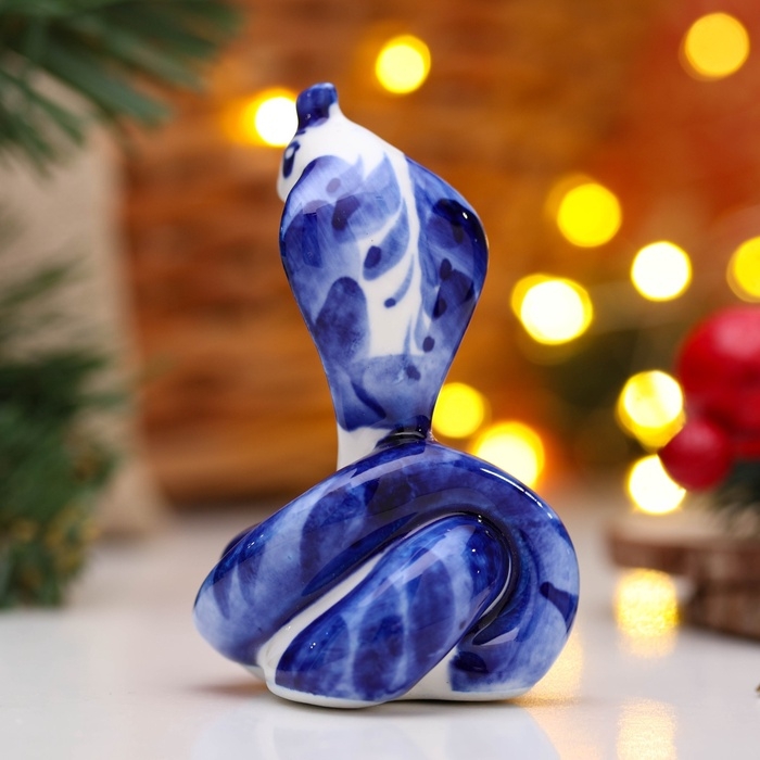 Новый год. Сувенир символ года "Змея Маруся", гжель, цвет, 4,5 см