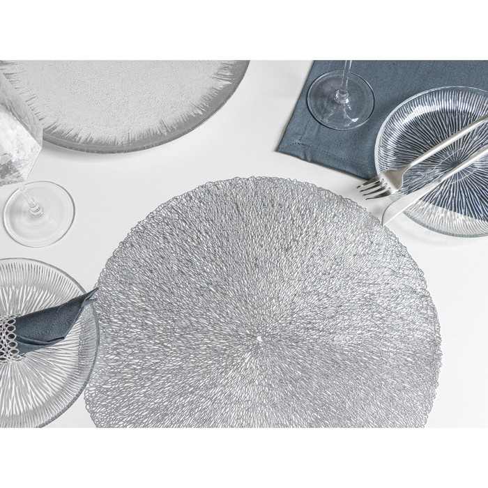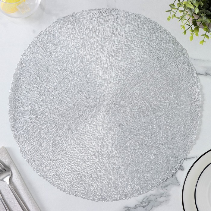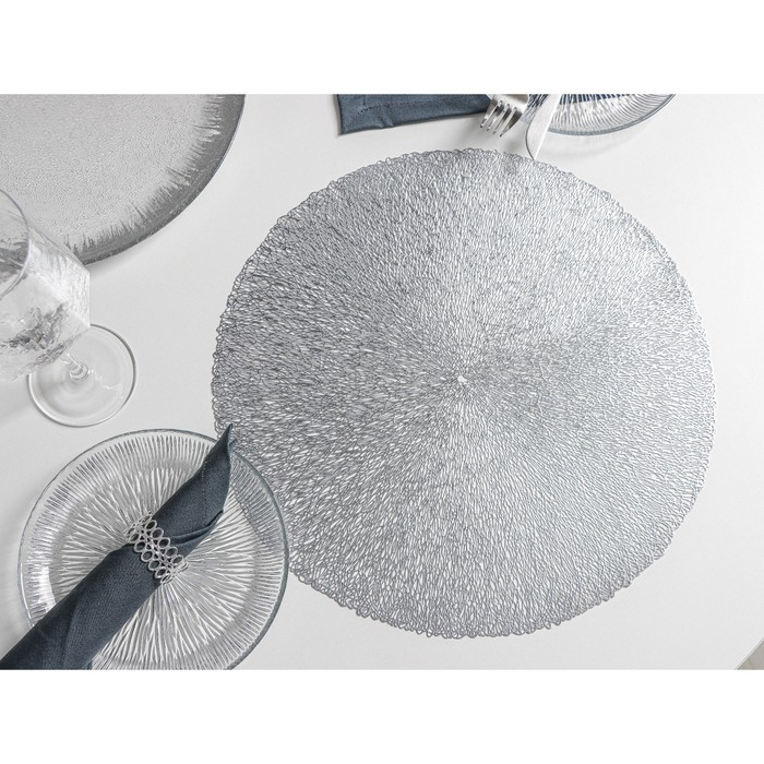 Салфетки сервировочные на стол Доляна «Соломка», d=38 см, 4 шт, цвет серебряный