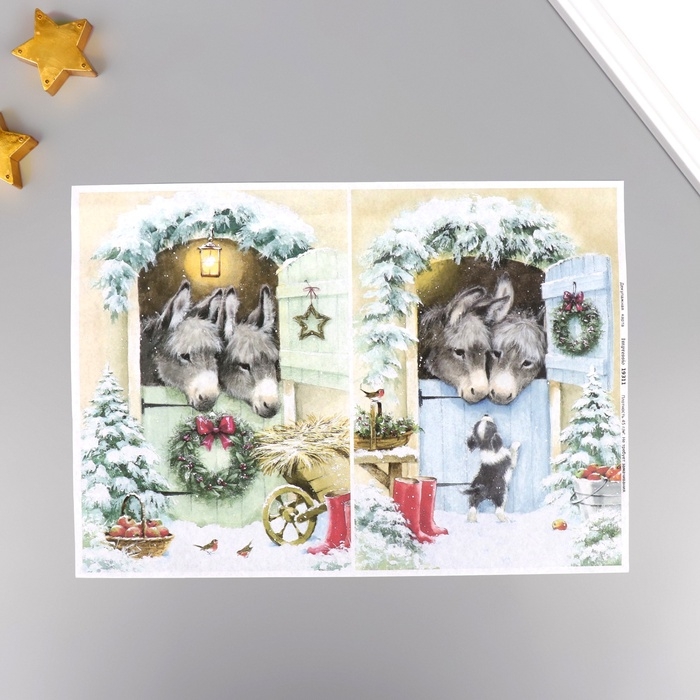 Набор декупажных карт 5 шт «Зимние ослики», плотность 45 гр/м2, формат А4