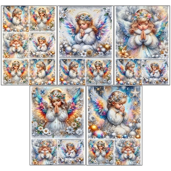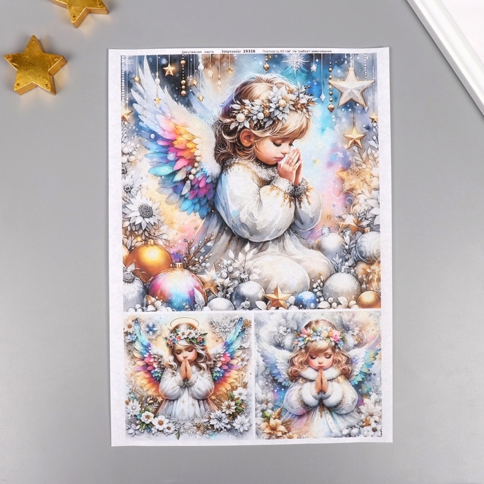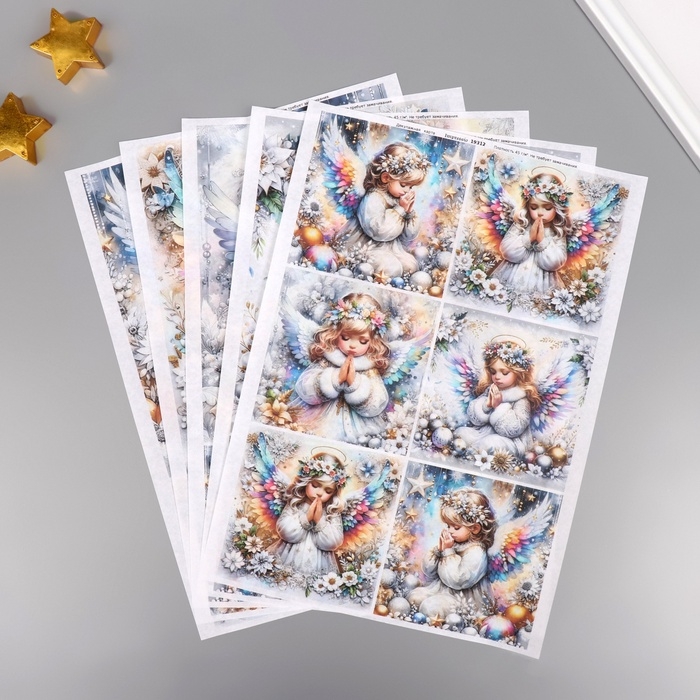 Набор декупажных карт 5 шт «Новогодние ангелы», плотность 45 гр/м2, формат А4