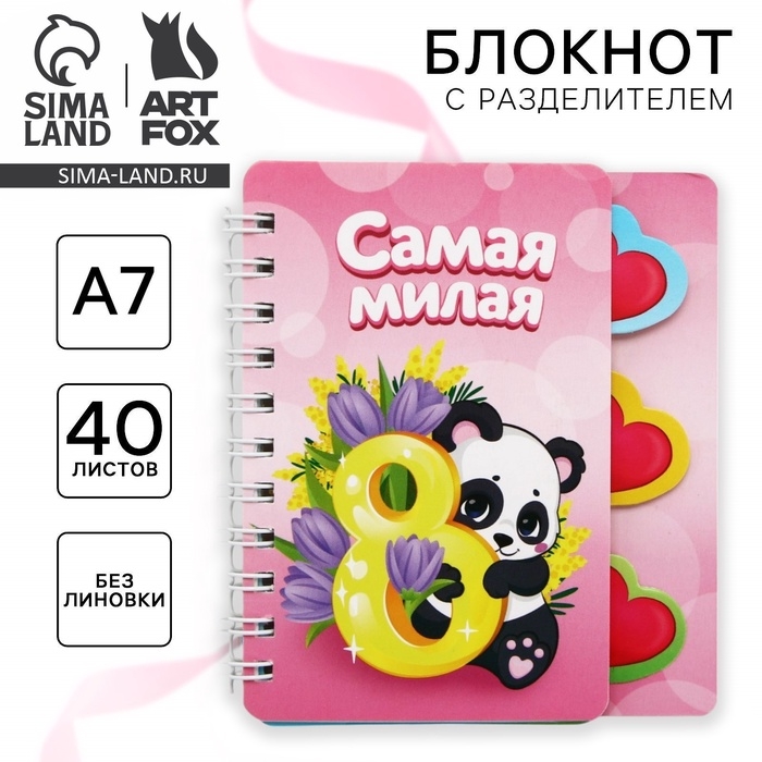 Блокнот детский с разделителями А7, 40 листов «Панда»