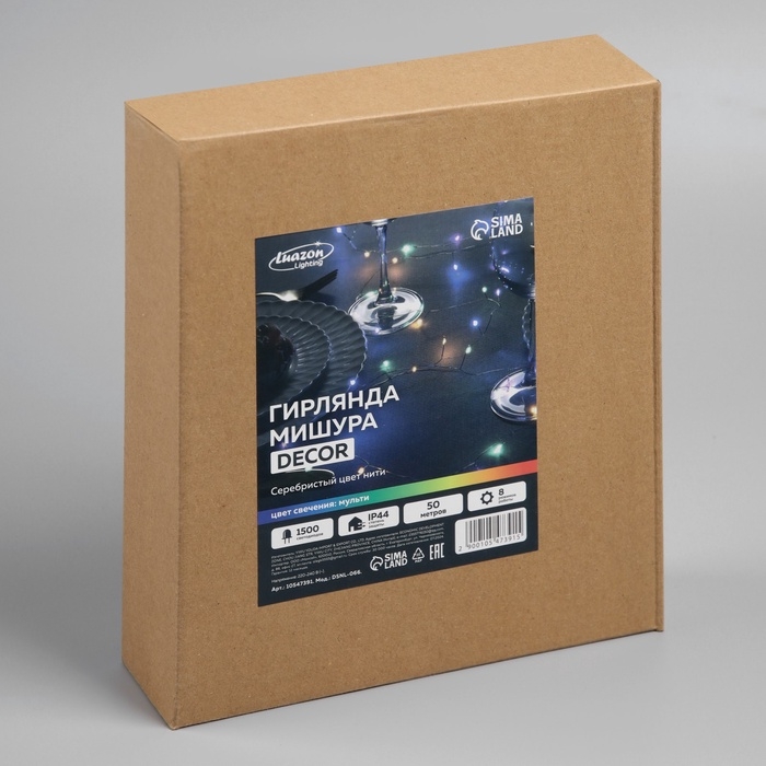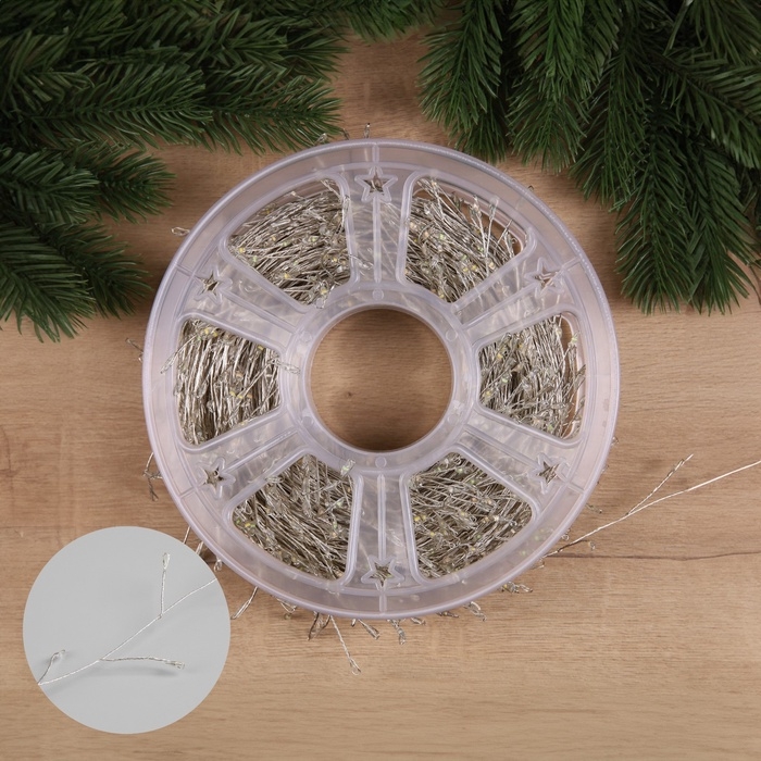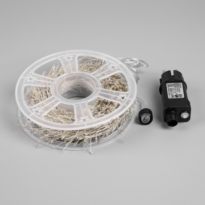 Гирлянда «Мишура» 50 м роса, IP44, серебристая нить, 1500 LED, 8 режимов, свечение мульти, 36 В