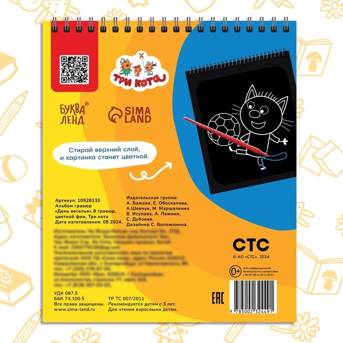 Гравюра-блокнот альбом «День веселья», 8 гравюр, цветной фон, Три кота