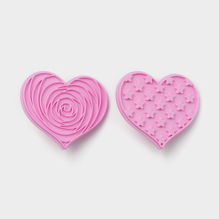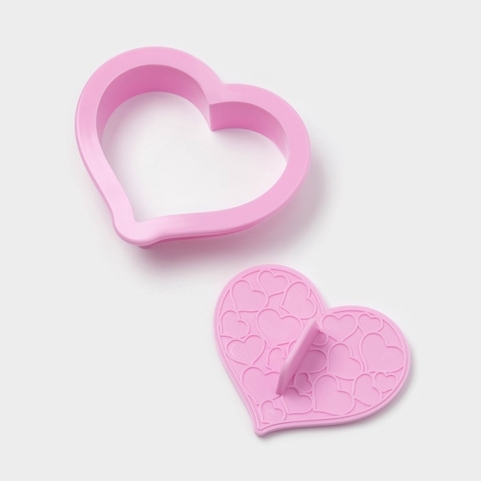Печати для теста и мастики Доляна «Сердечки», пластик, набор 6 предметов: пресс, печать 5 шт, розовые