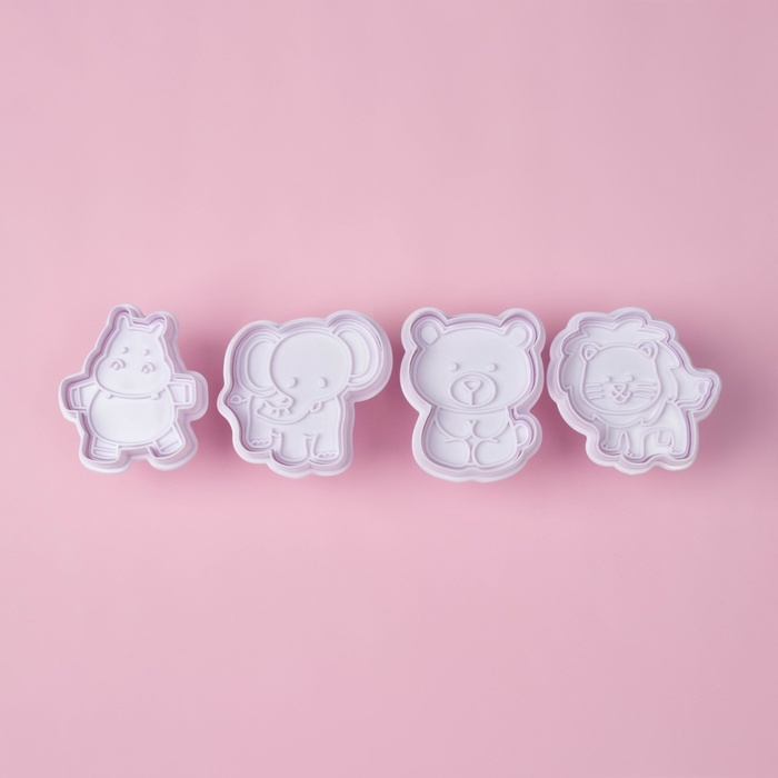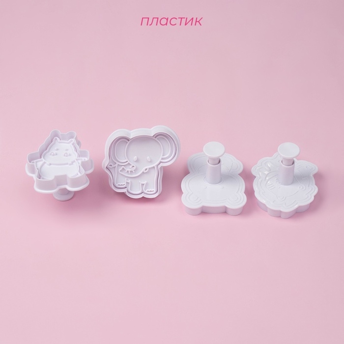 Плунжеры кондитерские Доляна «Зверята», для теста, набор 4 шт, пластик, белые