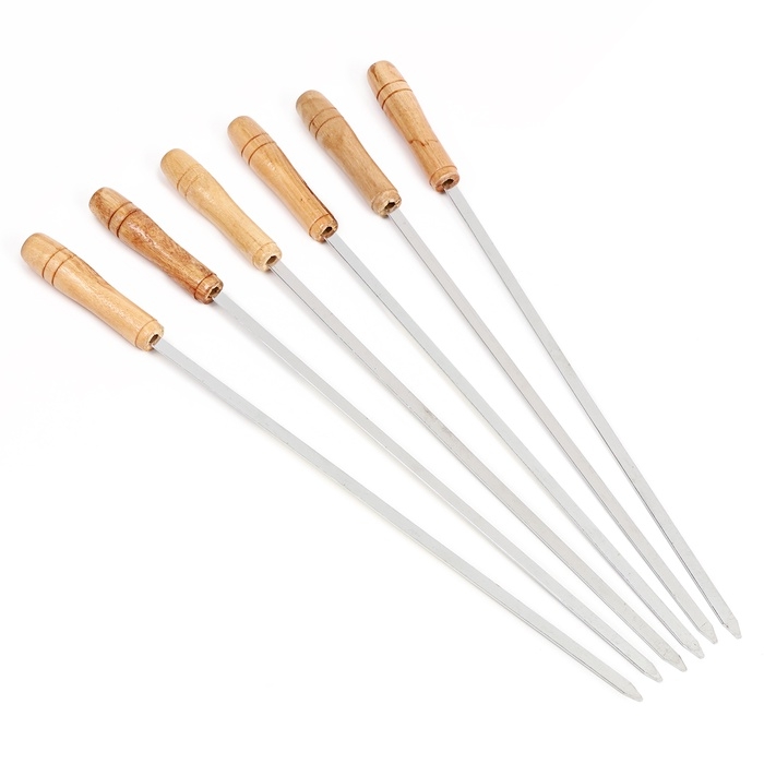 Набор шампуров для шашлыка 6 шт, рукоять - дерево, ширина - 0.7 см, 40 см