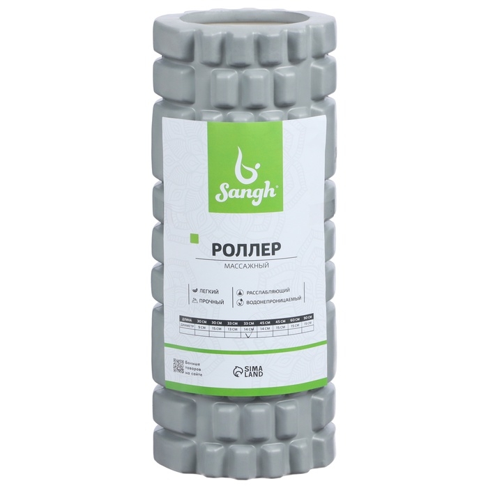 Ролик массажный Sangh, 33х14 см, цвет серый