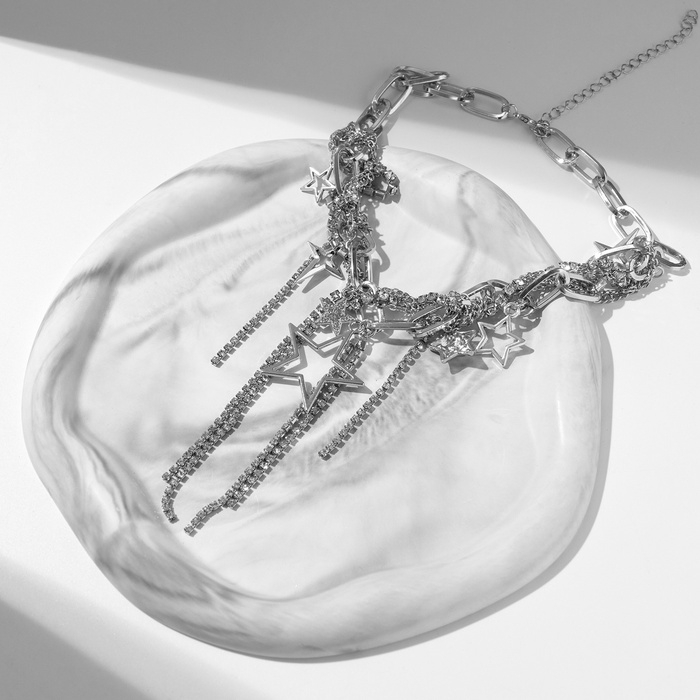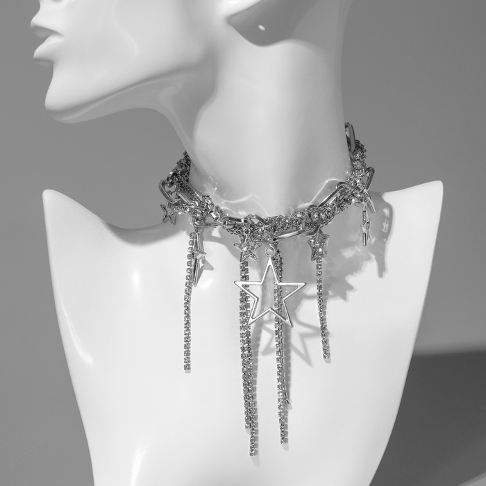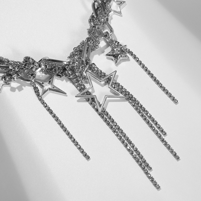 Чокер-колье многослойный "Звезда" переплетение, цвет серебро