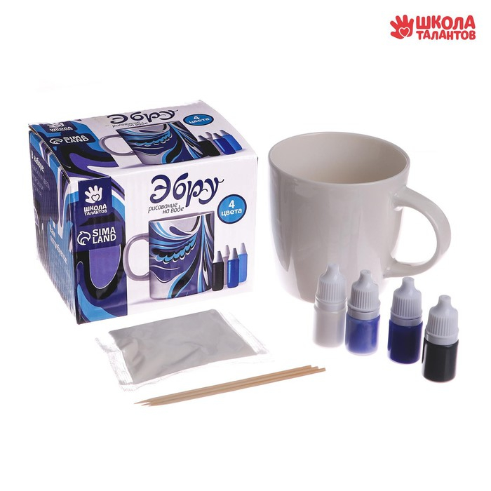 Набор для рисования эбру: краски 6 цв по 6 мл, 10 листов бумаги, загуститель 10 г, инструменты, поддон