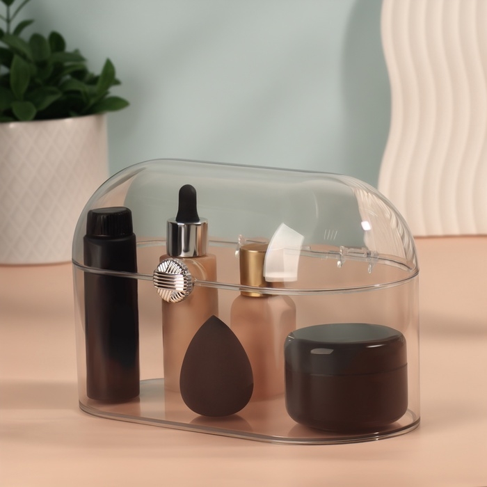 Эстетичный и вместительный органайзер легко впишется в любой интерьер и поможет вам быстро найти нужные косметические средства. Благодаря прозрачному материалу вы сможете видеть содержимое органайзера, не открывая его. Не упустите возможность приобрести органайзер для хранения косметики «Сундучок». Он станет незаменимым аксессуаром для вашей ванной комнаты или туалетного столика.
