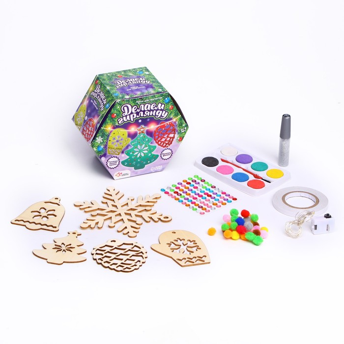 Набор для творчества «Новогодняя гирлянда, деревянные игрушки»