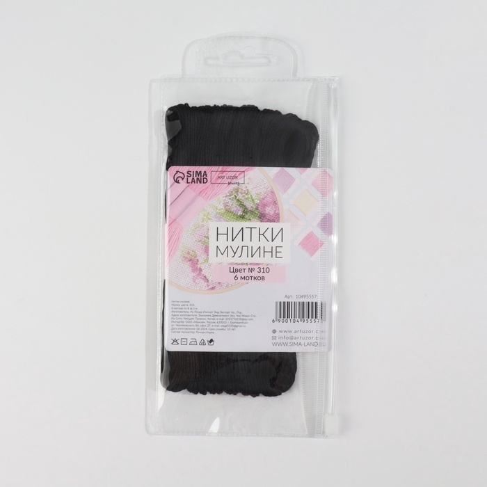Набор ниток мулине №310, 8 ± 1 м, 6 шт, цвет чёрный