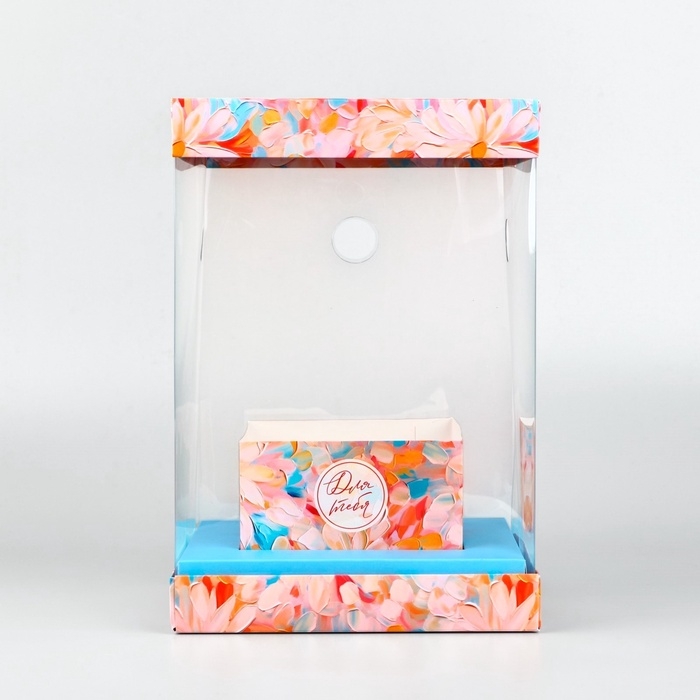 Коробка для цветов с вазой и PVC окнами складная «Весенние цветы», 16 х 23 х 16 см