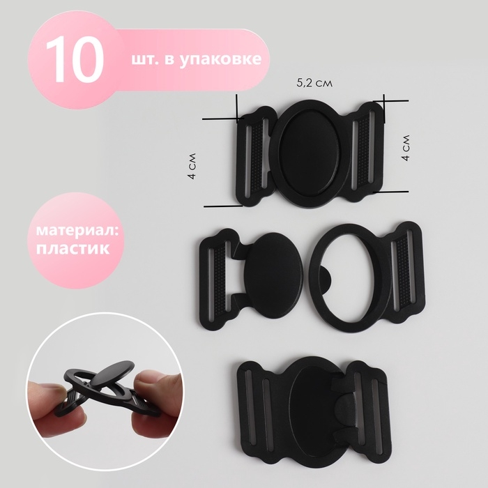 Фастекс 25 мм, 5,2 х 4 см, 10 шт, цвет чёрный