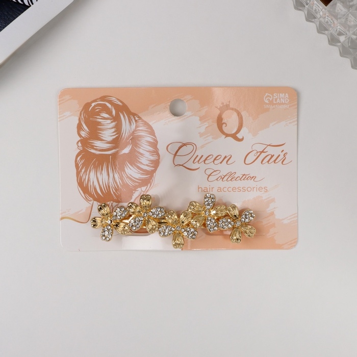 Заколка-автомат для волос "Олвен" цветы, 6,5 см, золото