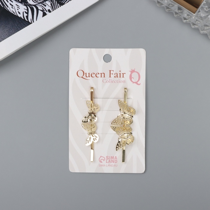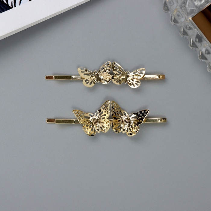 Невидимка для волос "Одри" (набор 2 шт) бабочка резная, 5,5 см, золото