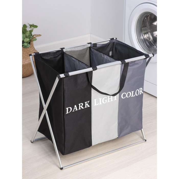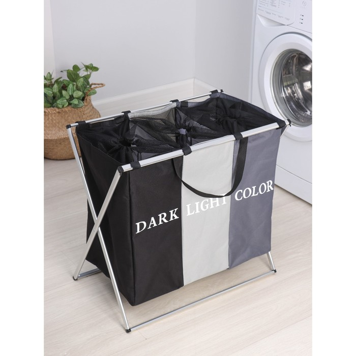 Корзина для белья Доляна Color, складная, тройная, 60×36×57 см