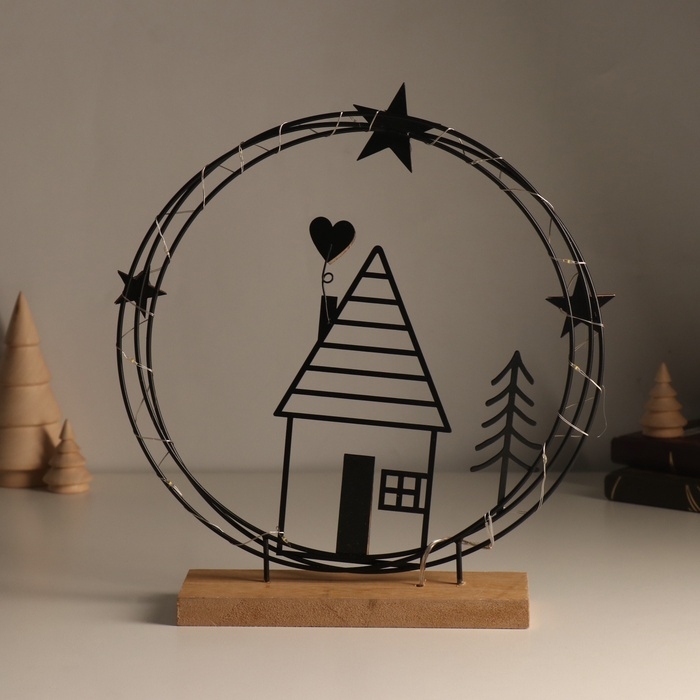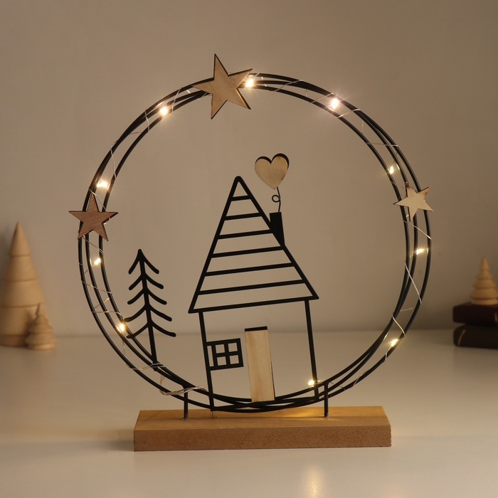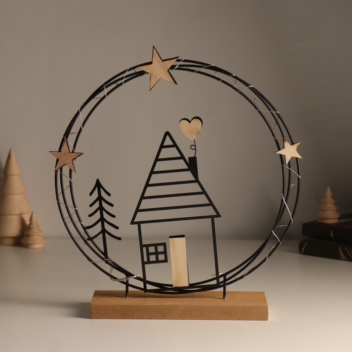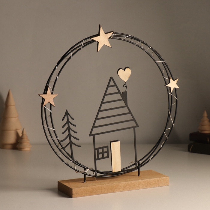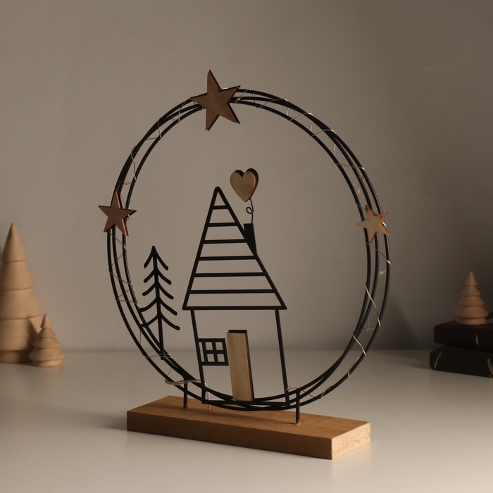 Сувенир металл, дерево свет "Домик с сердечком. Ночное небо" 6х25,5х26,5 см