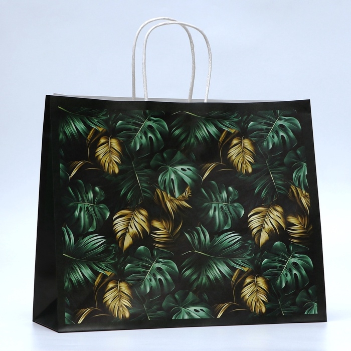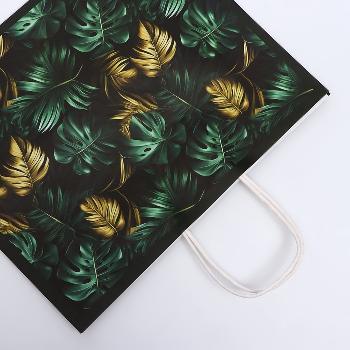 Пакет подарочный крафтовый "Золотые листья" 31,5 х 25 х 11,5 см, 120 г/м²