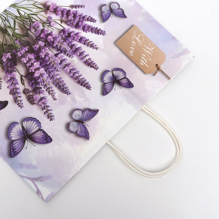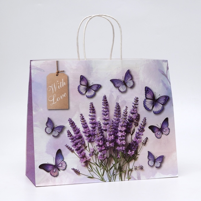 Пакет подарочный крафтовый "Бабочки" 31,5 х 25 х 11,5 см, 120 г/м²