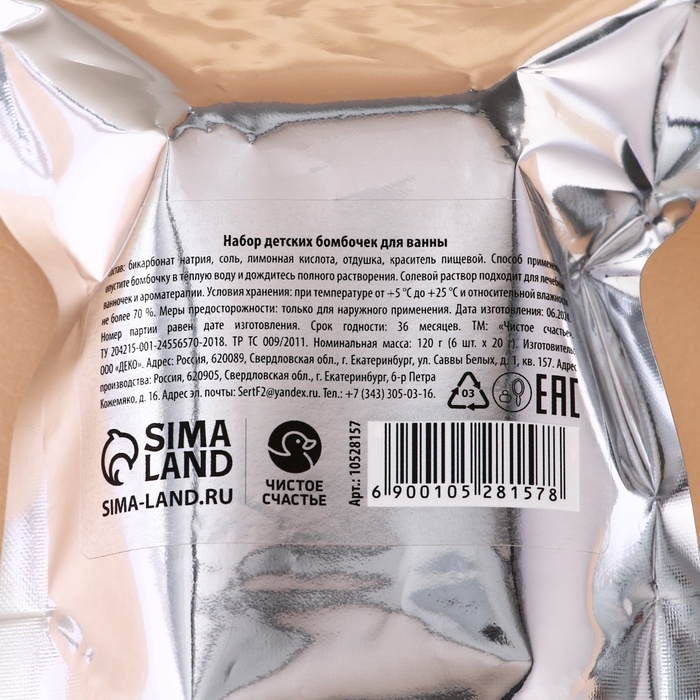Набор детский бомбочки для ванны ЧИСТОЕ СЧАСТЬЕ «Динозаврик», 6х20 г, Новый Год