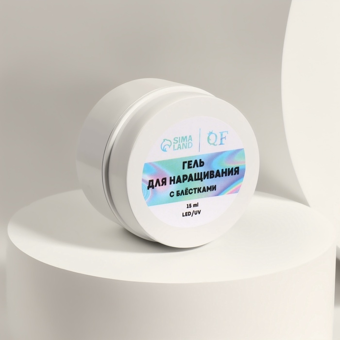 Гель для наращивания, с блёстками, 3-х фазный, 15 гр, LED/UV, прозрачный, белый