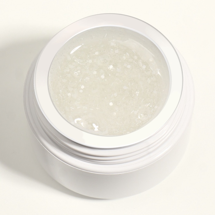 Трёхфазная система обеспечивает надёжное сцепление геля с ногтевой пластиной, а также его долговечность. Благодаря этому ваш маникюр будет выглядеть безупречно в течение нескольких недель. Прозрачный гель с белыми блёстками — это универсальный вариант для любого случая.