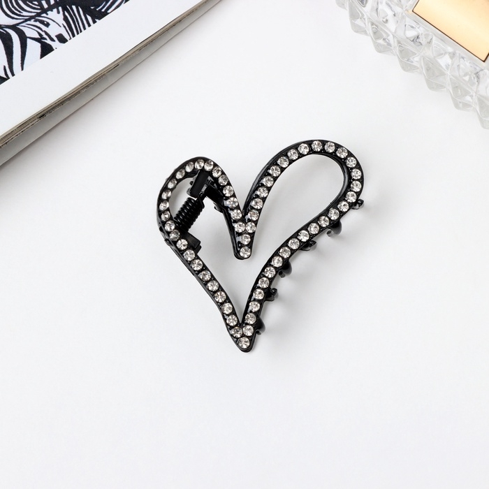 Краб для волос "Джун" сердце, 4,5 см, чёрный