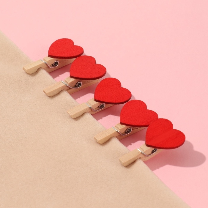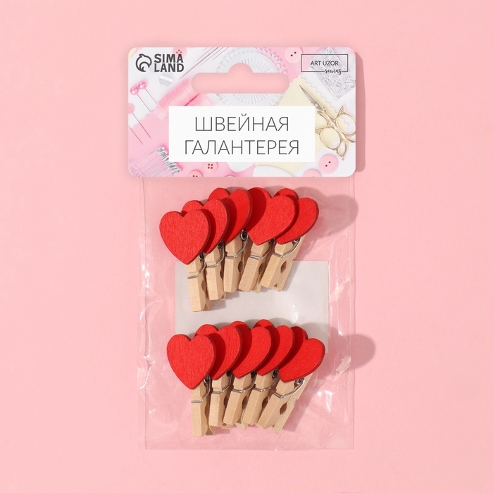 Прищепки для шитья «С сердцем», 3,5 × 2 × 1 см, 10 шт, цвет красный