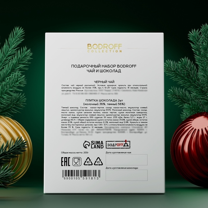 Также в подарок включен великолепный шоколад, который добавит сладости в ваши новогодние праздники. Нежный, кремовый и тающий во рту, этот шоколад станет отличным дополнением к чашечке горячего чая.