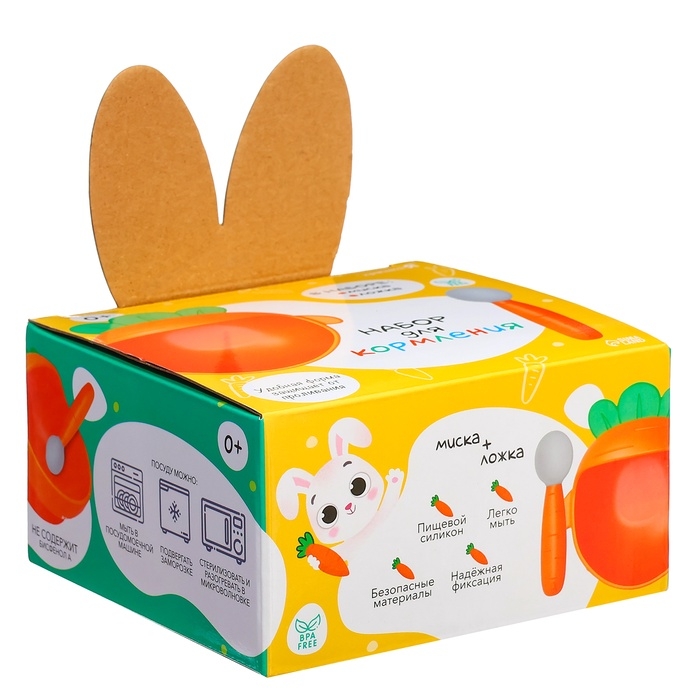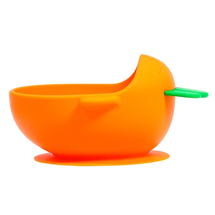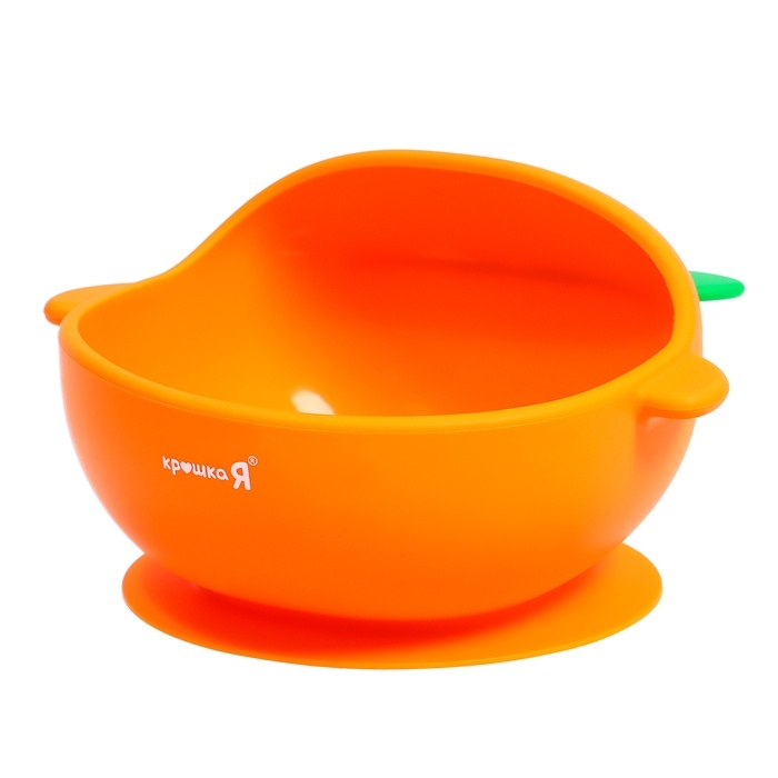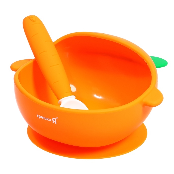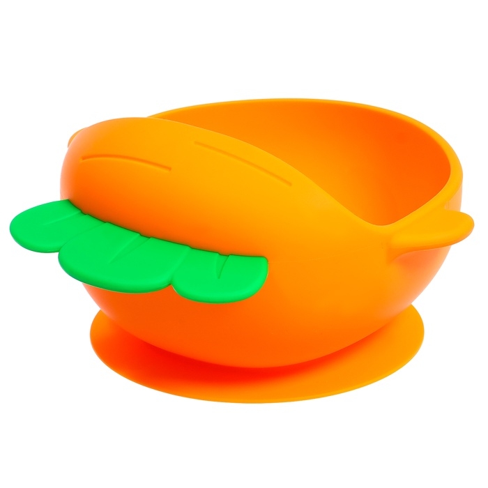 - Посуда выполнена в виде моркови. Необычная форма и яркие цвета привлекут внимание крохи.