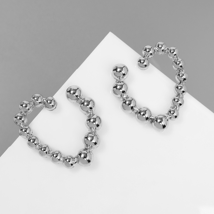 Серьги металл "Сердца" воссоединение, цвет серебро