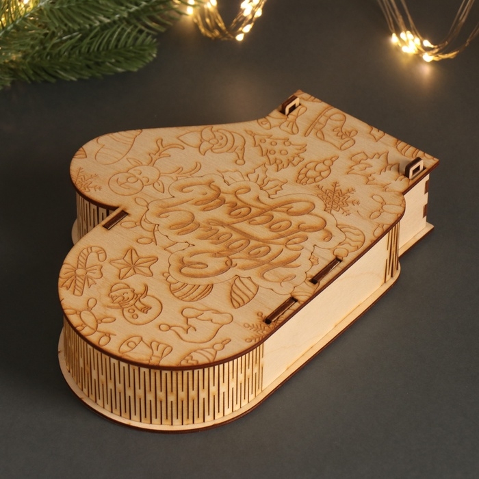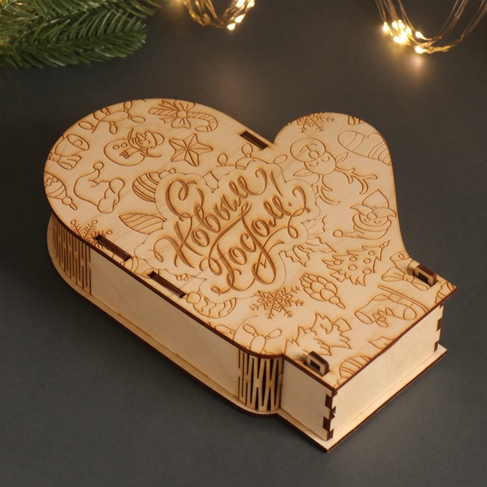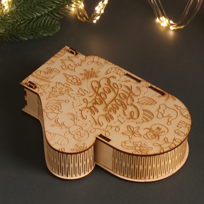 Новогодняя шкатулка-варежка "С Новым годом" 21х16х5 см