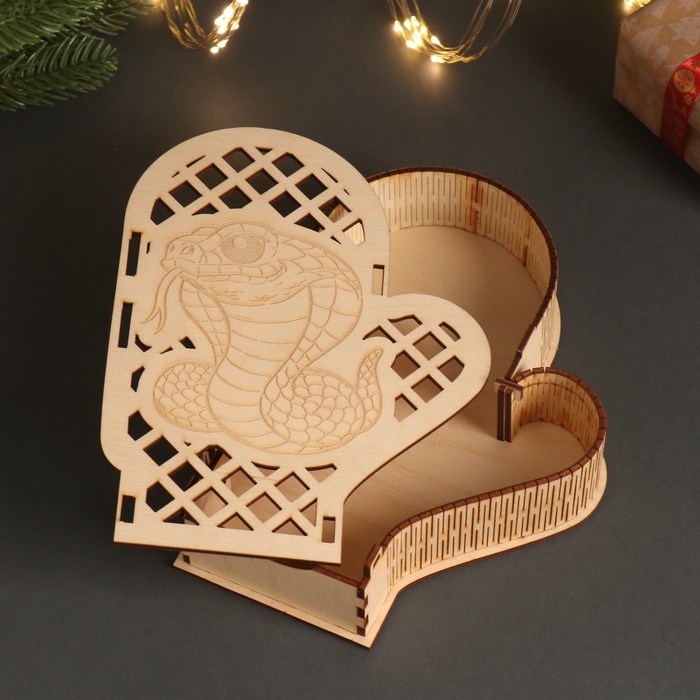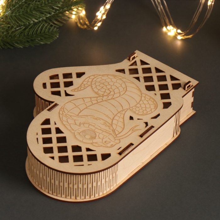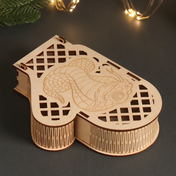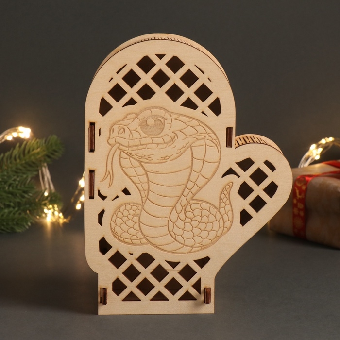 Новогодняя шкатулка-варежка "Змейка и ромбики" 21х16х5 см