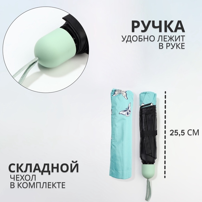 Зонт механический «Бабочки», с проявляющимся рисунком, 4 сложения, 8 спиц, R = 47/55 см, D = 110 см, цвет МИКС