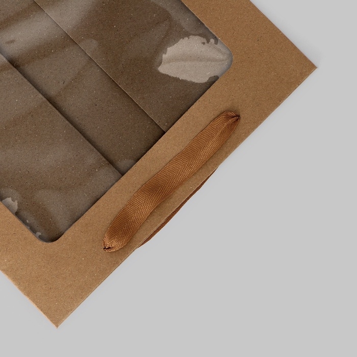 Пакет подарочный с окном, крафт, 50 х 30 х 25 см