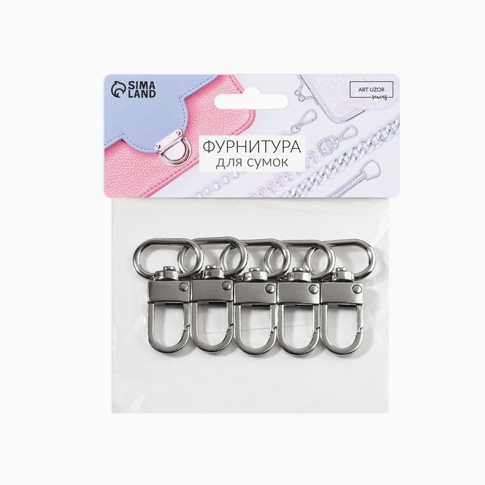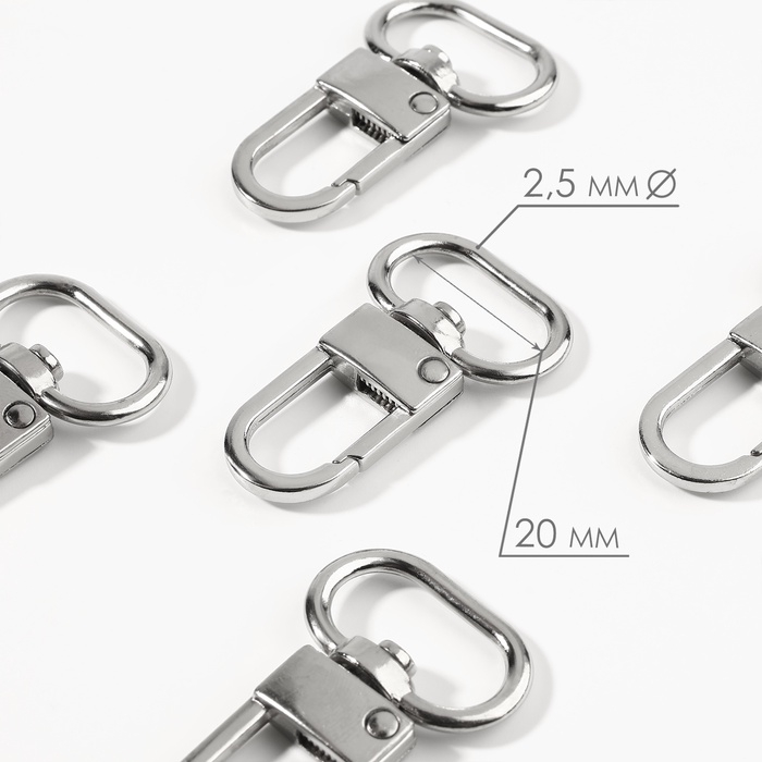 Карабин металлический, 41 × 25 мм / 20 × 2,5 мм, 5 шт, цвет серебряный