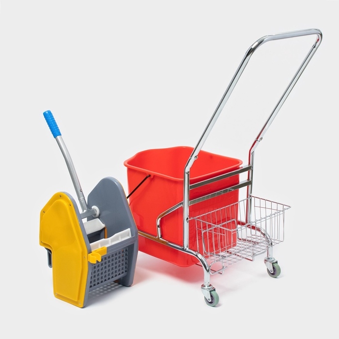 Тележка уборочная одноведерная с отжимом и сеткой, 23 л, хромированная рама