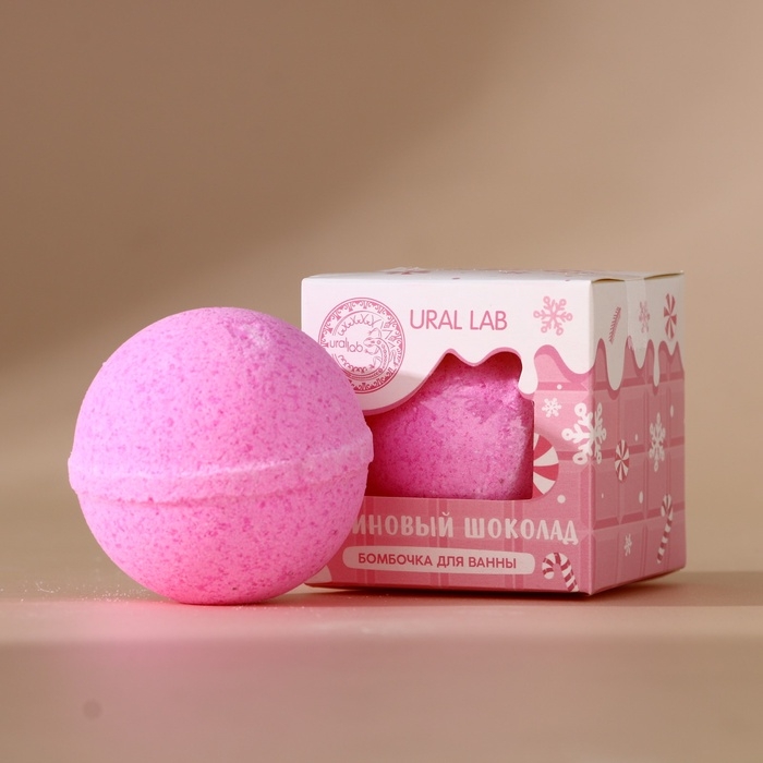 Бомбочка для ванны URAL LAB, 120 г, аромат малинового шоколада, Новый Год